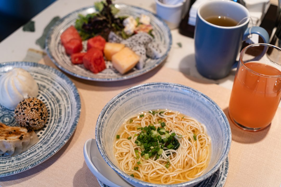 ヌードルバーでその場で茹でてくれる麺類やお粥など、お腹に優しいメニューが揃うのが嬉しいポイント。