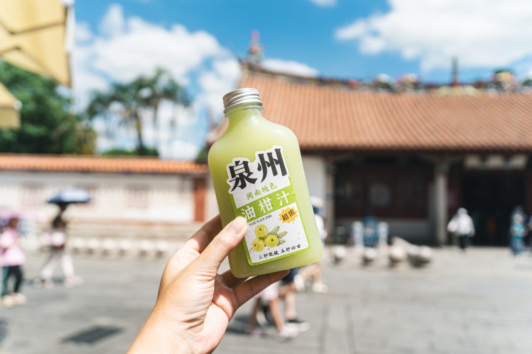 泉州の特産品の油柑を使ったドリンクは、ほんのり苦味を感じるさっぱりとした柑橘系の飲み物で、暑い夏の散策のお供にぴったり。