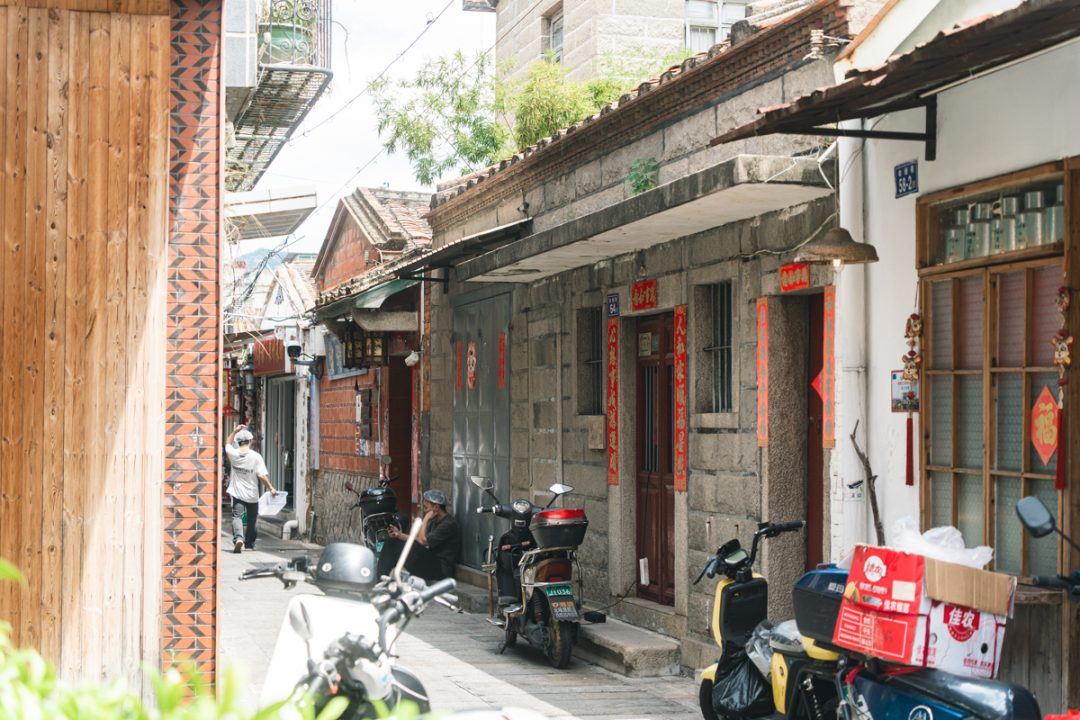 赤レンガ造りの古民家や石畳の路地が続き、歩くだけでまるで古い中国映画のワンシーンに迷い込んだような気分に。