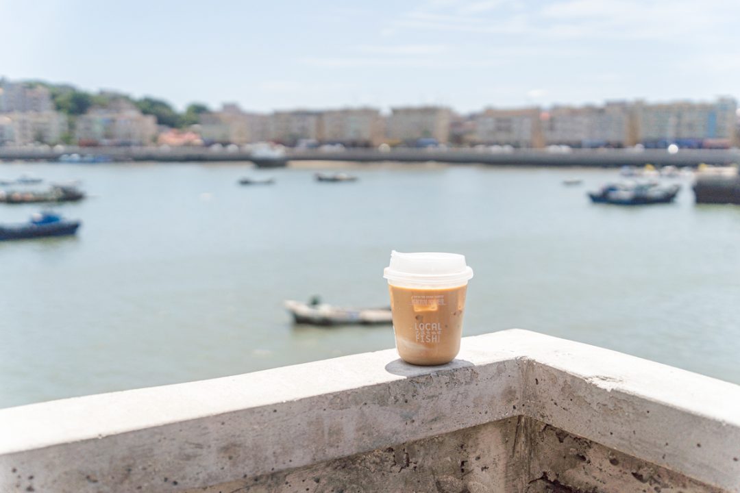 長閑な漁港の景色を眺めながら、美味しいコーヒーでホッと一息。