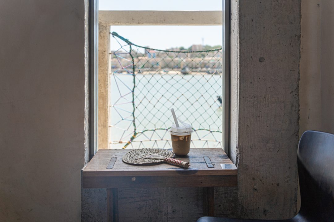 こんなところにカフェがあるの…?と思わず不安になってしまうようなローカルな漁港の風景の中をドキドキワクワクと進んでいくと、波止場に突如現れるおしゃれカフェ。