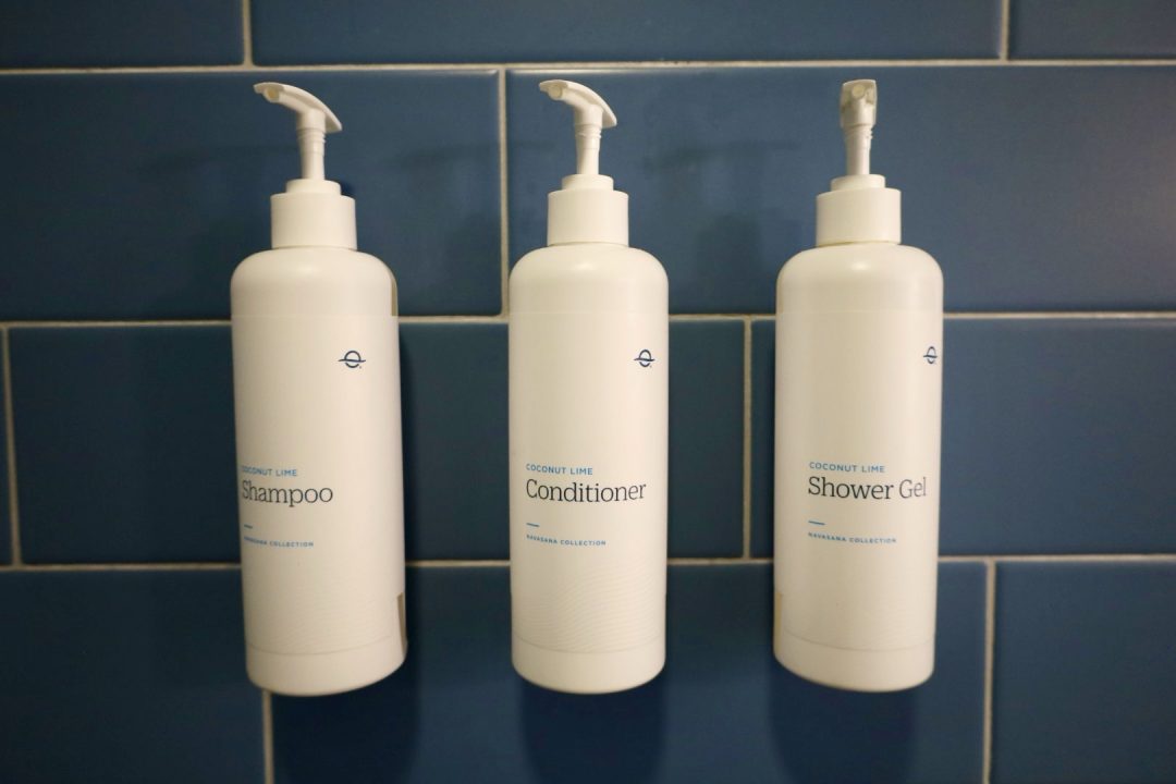 ウェットエリアはシャワールームと洗面台が分かれ、使いやすさも抜群。シャンプーやトリートメント、ボディソープが備え付けられています。