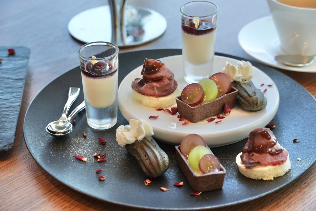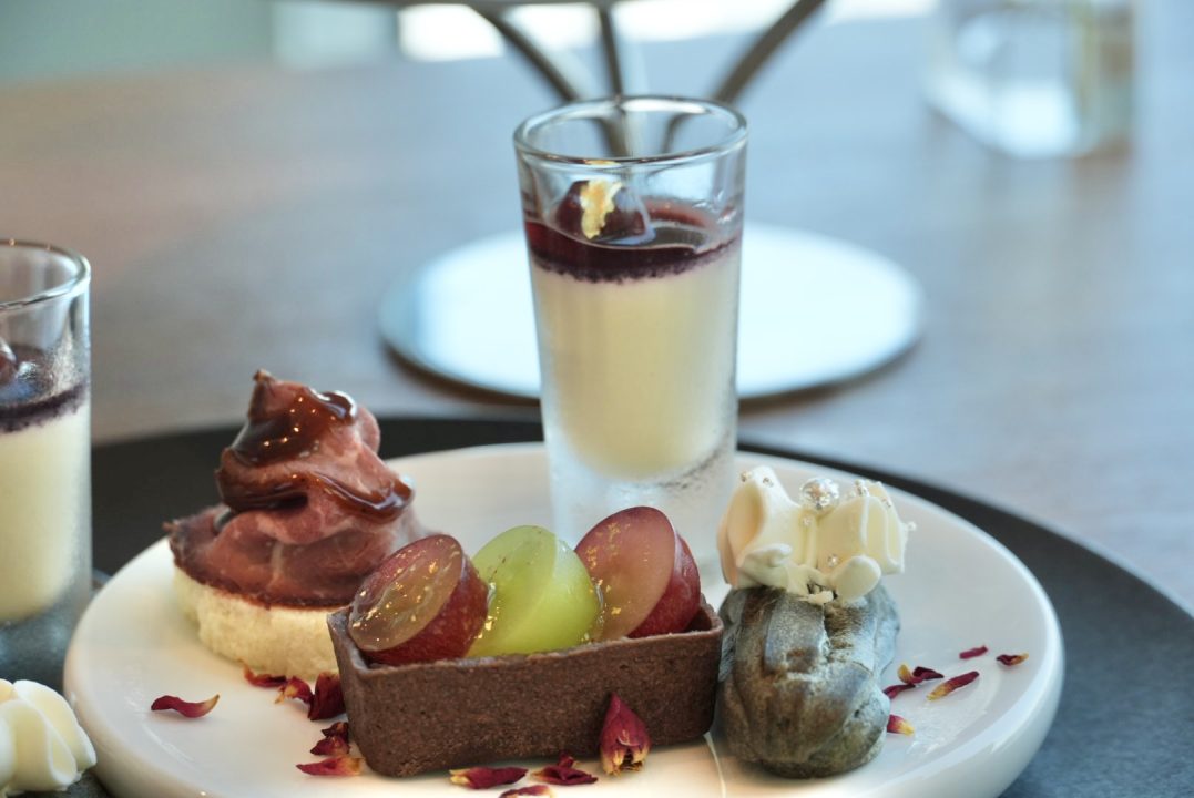 フォアグラやチーズといったリッチな素材を取り入れつつ、ぶどうやかぼちゃなど秋の味覚を存分に感じるスイーツやセイボリー。