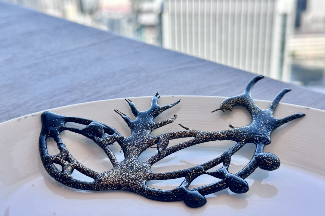 見た目の華やかさと、口に運んだときの意外な味や香りの組み合わせが、素顔を隠して楽しむ仮面舞踏会のテーマにぴったりでした。