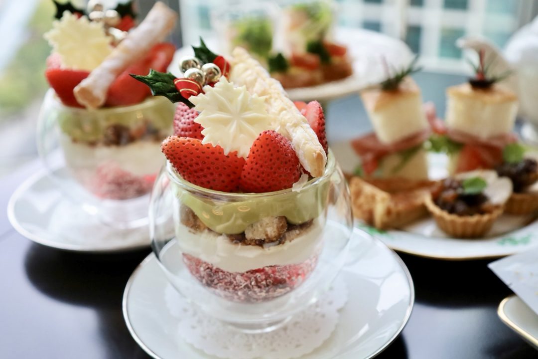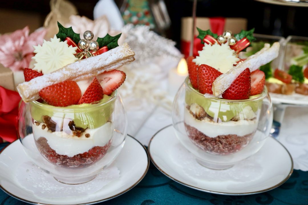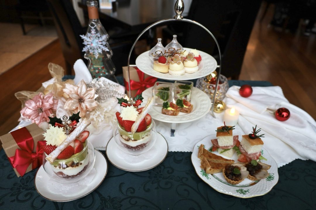 クリスマスモチーフのスイーツやセイボリーが並ぶ、この季節ならではのアフタヌーンティー。