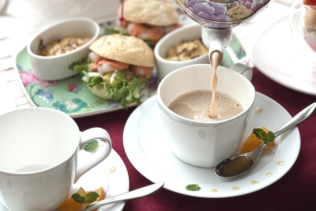 ジャムを食べてから紅茶をいただくロシアンティースタイルで口の中でマリアージュを楽しんだり、ティーにオレンジソースを溶かしたりと、楽しみ方はお好みで。