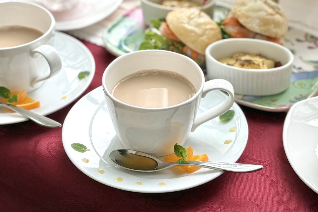 ハニーミルク・オランジェは、ルシアンティーをイメージした濃厚なミルクティー。SIROCCO TEAのオレンジが香るフレーバードルイボスティー「ルイボスタンジェリン」に、ミルクとはちみつを合わせています。