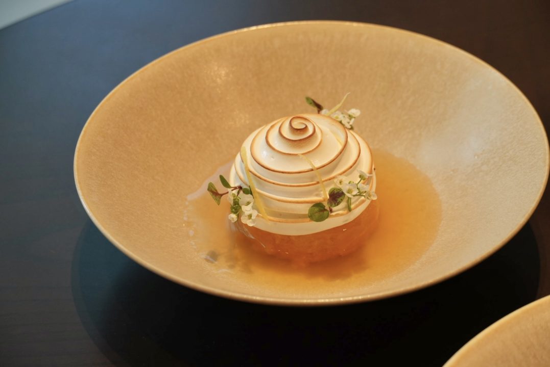 香ばしく焼き上げたメレンゲの中に、冷たいアイスクリームと柑橘の風味が閉じ込められています。
