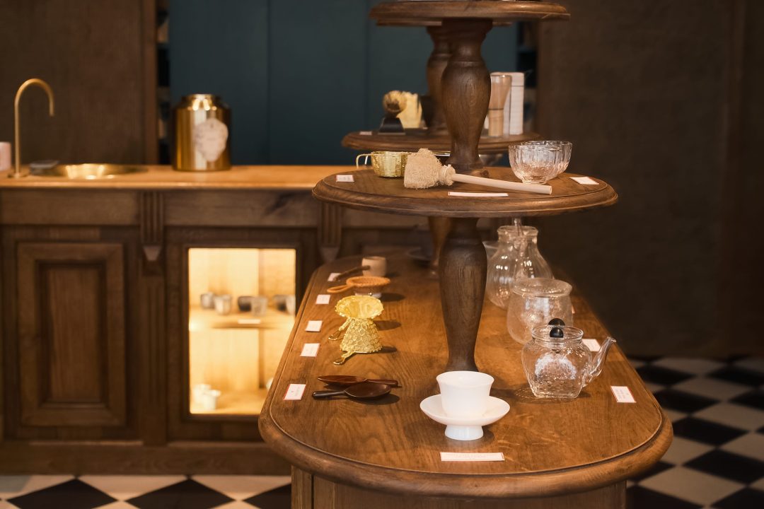 クラシカルな店内には、創業者のアリス・ブローによってセレクトされた高品質な茶葉や茶器などが並んでいます。