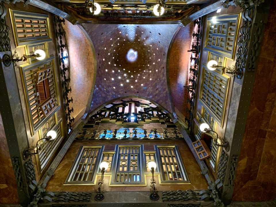 グエル邸の最も煌びやかなエリアが、高さ16メートル2階から4階まで突き抜ける天井ドーム。