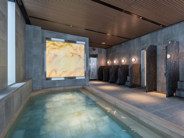 18階に設けられた宿泊者専用の大浴場では、木漏れ日をイメージした光の演出とともに、露天風呂でゆったりとした時間を楽しめます。